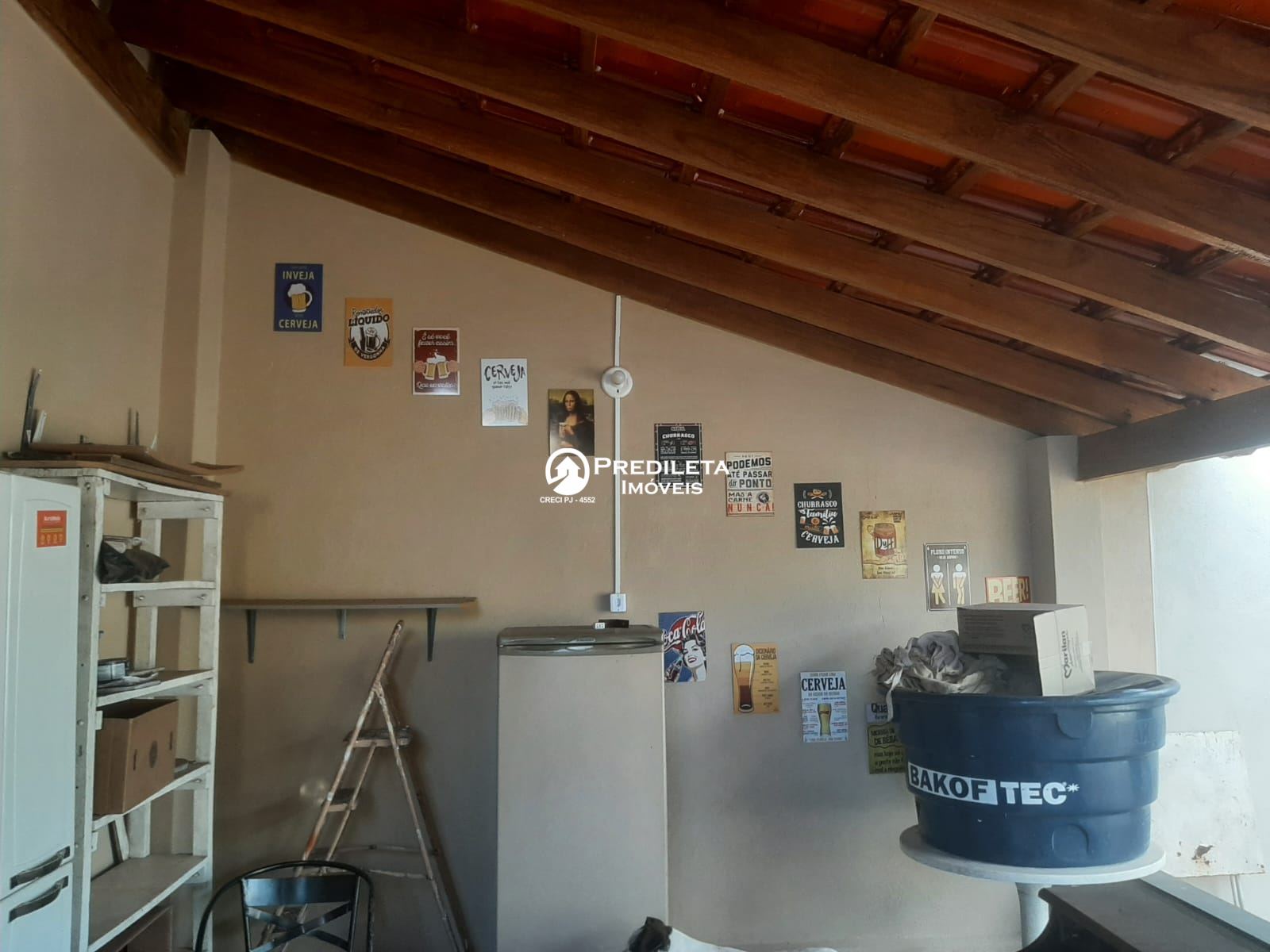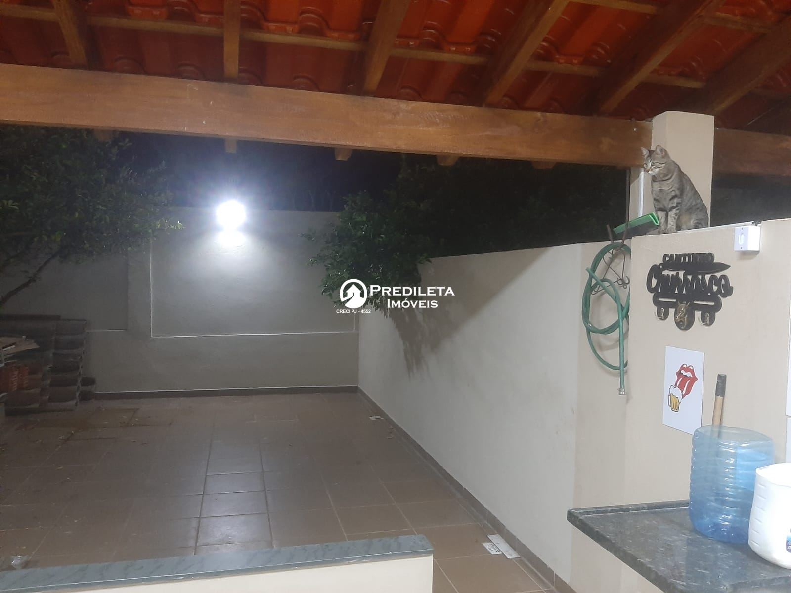 - Área comum/compartilhada: garagem coberta para 03 carros (com banheiro abaixo das escadas), varanda aos fundos da residência (com banheiro próximo), recém-construída, com churrasqueira, forno e fogão de lenha, além de pia.