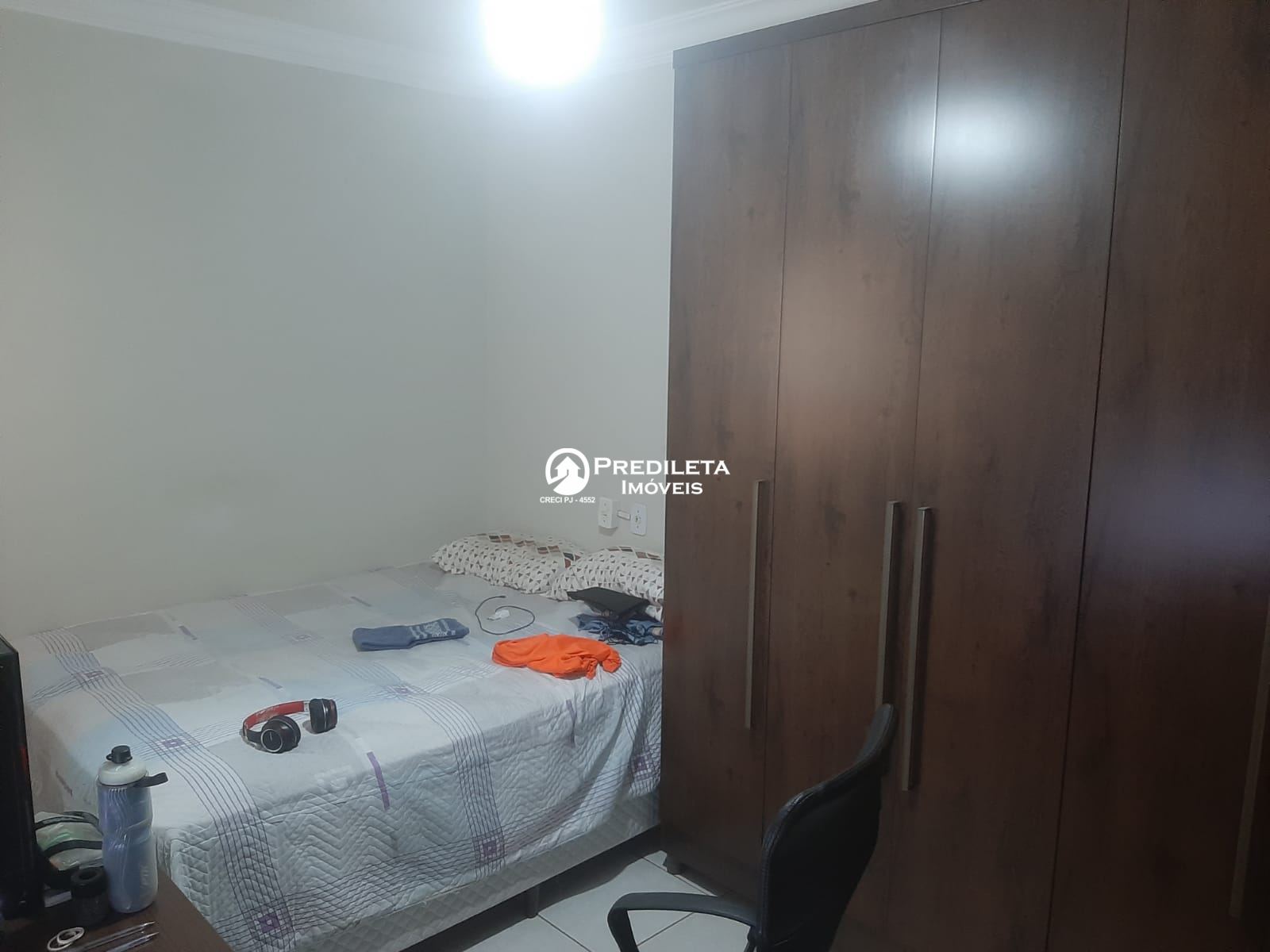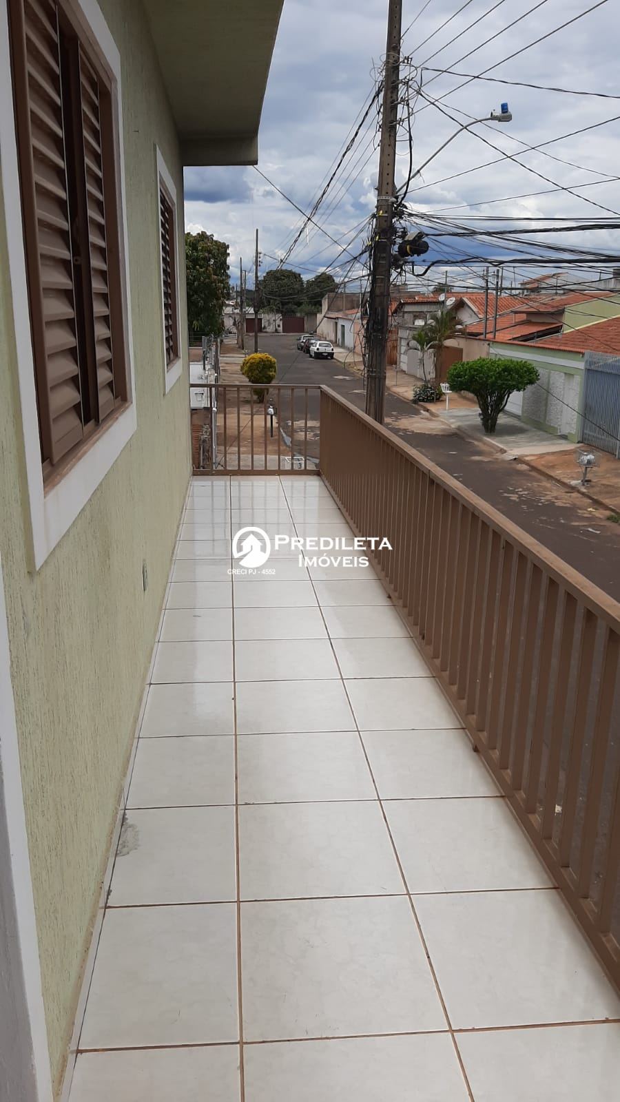 - Residência (parte inferior): varanda grande aos fundos (conjugada com área de serviços), 01 sala, 03 quartos (com armário embutido), sendo 01 suíte, 01 cozinha ampla, além de 01 banheiro social. Área: 105 m².